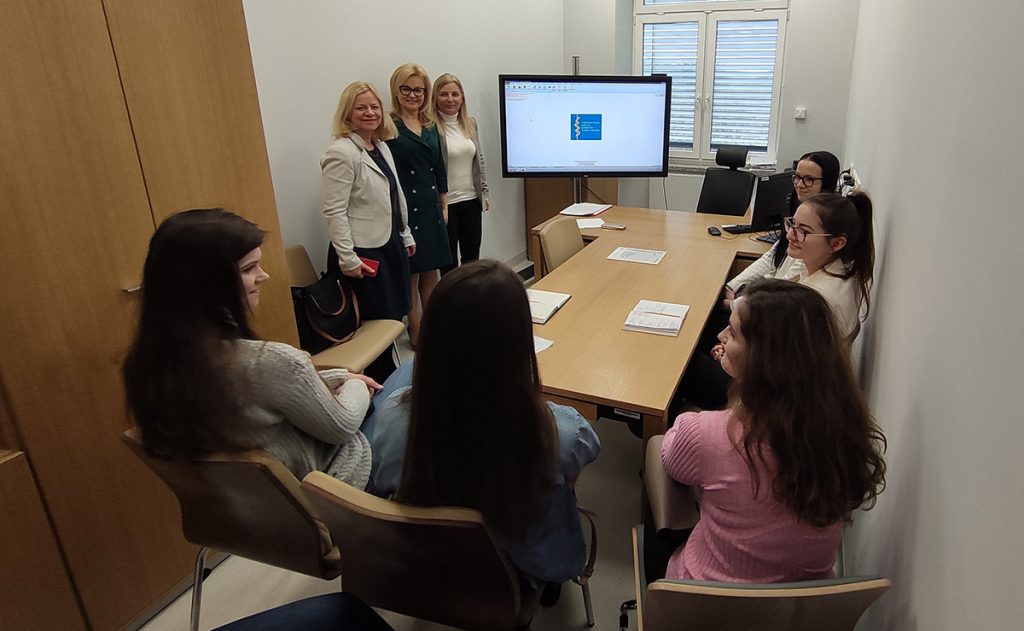 Pani Beata Kropiewnicka, pełniąca funkcję zastępcy dyrektora do spraw finansowych, główny księgowy USK, nadzorująca budżet jednostki w wysokości 550 mln zł rocznie, zaprezentowała specyfikę rachunkowości tej jednostki. Podkreśliła, że USK stanowi jednostkę sektora finansów publicznych, działającą jednocześnie jak przedsiębiorcy. Studenci mogli też dowiedzieć się czym zajmuje się współczesny księgowy i jakie wyzwania czekają księgowych w przyszłości, ze szczególnym podkreśleniem digitalizacji rachunkowości. Przy okazji Pani Beata Kropiewnicka zaznaczyła duże umiejętności młodzieży w zakresie nowoczesnych technologii. Przekazała też uwagi dotyczące wymagań pracodawców stawianych studentom w czasie rekrutacji na stanowiska w dziedzinie finansów i rachunkowości. Należą do nich: umiejętność pracy w zespole, przygotowanie teoretyczne w zakresie rachunkowości, aktywność studenta w trakcie studiów, znajomość technologii informatycznych, kierowanie się zasadami etycznymi, predyspozycje osobiste, takie jak: dokładność, terminowość, dociekliwość, odporność na stres i gotowość do ciągłej nauki. Następnie Pani Urszula Dolistowska, pełniąca funkcję zastępcy głównego księgowego, przedstawiła wybrane praktyczne aspekty prowadzenia ksiąg rachunkowych w połączeniu ze stosowanym w jednostce systemem informatycznym.