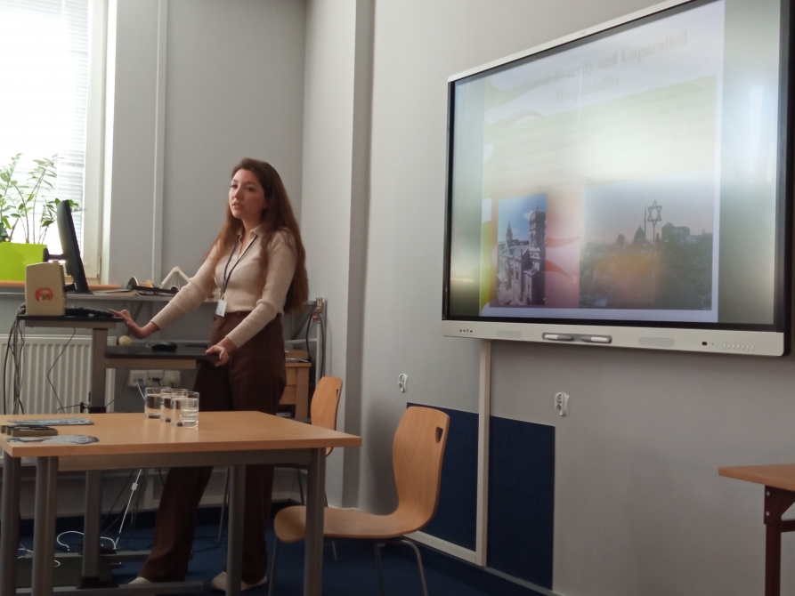 Profesor Zhala Hamzayeva, Prodziekan ds. Nauki z Azerbaijan Technological University przedstawiła ofertę edukacyjną swojego uniwersytetu oraz opowiedziała o niezwykle ciekawej i barwnej kulturze Azerbejdżanu w ramach wykładu „Presentation of Azerbaijan Technological University and the culture of Azerbaijan”.