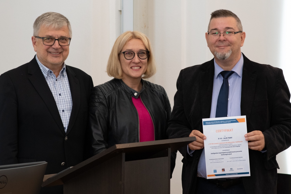 Warsztatom towarzyszyło posiedzenie Komitetu Inżynierii Produkcji Polskiej Akademii Nauk, któremu przewodniczył prof. dr hab. inż. Józef Kuczmaszewski z Politechniki Lubelskiej. W posiedzeniu Komitetu udział wzięła JM Rektor Politechniki Białostockiej, dr hab. inż. Marta Kosior-Kazberuk, prof. PB.