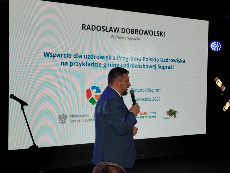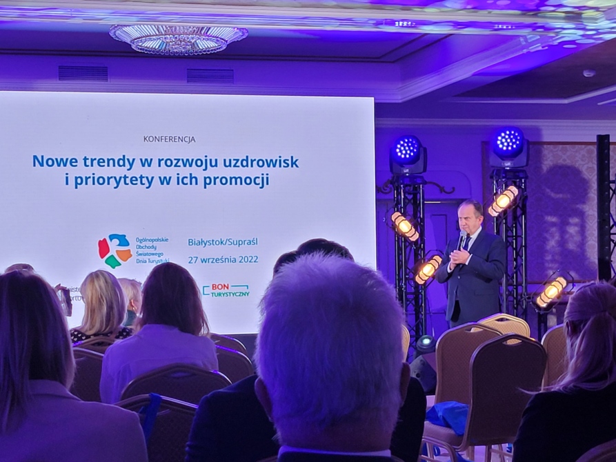 Obchody rozpoczęły się konferencją pt. Nowe trendy w rozwoju uzdrowisk i priorytety w ich promocji. Pan Andrzej Gut-Mostowy, Sekretarz Stanu w Ministerstwie Sportu i Turystyki, zaprezentował dane dotyczące wsparcia uzdrowisk w ramach Polskiego Ładu – Program Polskie Uzdrowiska (PPU). Sytuację uzdrowisk w Polsce po pandemii COVID – 19 przedstawił Pan dr Jan Golba, Prezes Zarządu Stowarzyszenia Gmin Uzdrowiskowych w Polsce i jednocześnie burmistrz Muszyny. Przedstawione zostały również ambitne plany rozwoju gmin uzdrowiskowych województwa podlaskiego, zaprezentowane przez burmistrza Supraśla – Pana dr. Radosława Dobrowolskiego i Pana Sławomira Sieczkowskiego – zastępcę burmistrza Augustowa. W dyskusji nie zabrakło głosów naszych pracowników, którzy przypomnieli o prowadzonych badaniach w obszarze turystyki uzdrowiskowej i syntetycznie zaprezentowali wnioski z nich płynące.