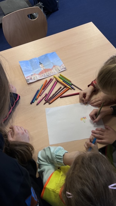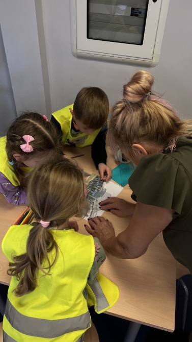 • ćwiczeń kreatywnych „Atrakcje turystyczne Białegostoku” poprowadzonych przez studentów z koła naukowego OBIEŻYŚWIAT, podczas których dzieci odgadywały atrakcje turystyczne Białegostoku, kolorowały je i układały kolorowe puzzle przedstawiające najciekawsze obiekty Białegostoku. Na zakończenie spotkania dzieci zostały obdarowane przez Studentów SKN OBIEŻYŚWIAT słodyczami.