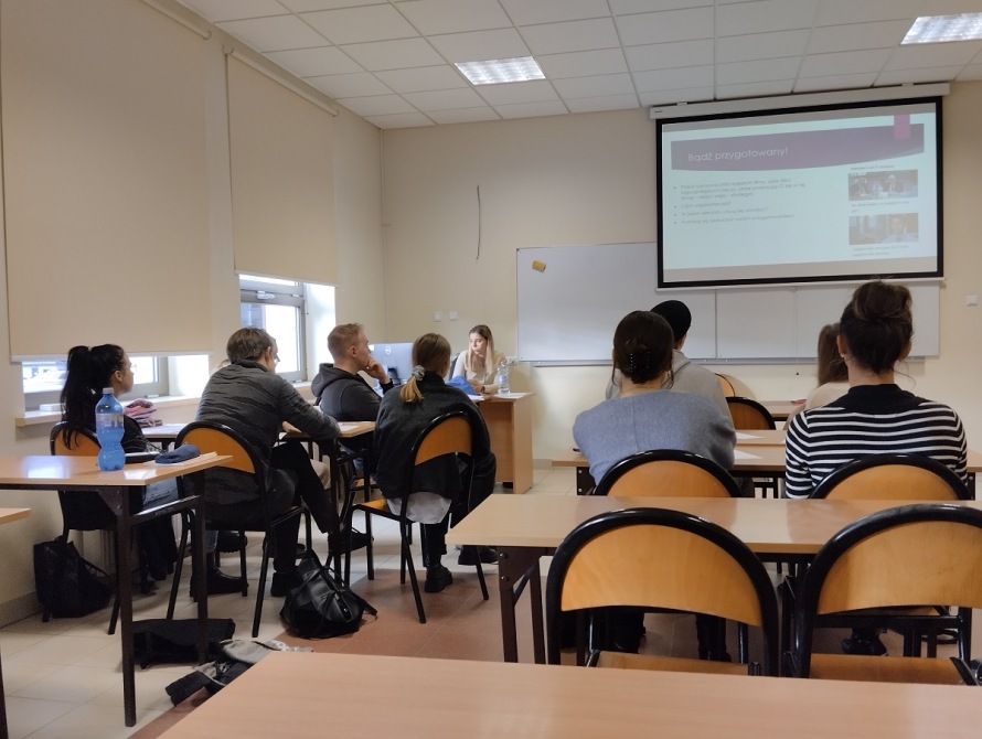 Przedyskutowano również kwestie dotyczące dobrego napisania CV (strukturę, klauzulę RODO, w jaki sposób pisać o doświadczeniu zawodowym, dodatkowych umiejętnościach i kwalifikacjach) oraz jakich pytań można się spodziewać podczas rozmowy kwalifikacyjnej. Podczas warsztatów wykorzystano wiele metod dydaktycznych – ćwiczenia praktyczne, odgrywanie scenek, dyskusja problemowa, burza mózgów.