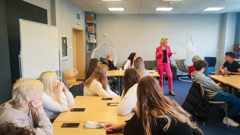 Dr Ewa Tokajuk, adiunkt w Katedrze Zarządzania, Ekonomii i Finansów, przeprowadziła warsztat dotyczący „Finansów i rachunkowości” ukierunkowany na zapoznanie uczniów z potrzebą zrozumienia znaczenia zarządzania finansami tak w życiu osobistym, jak i w ramach prowadzonej działalności gospodarczej. Uczniowie starali się znaleźć odpowiedź skąd się biorą pieniądze oraz jak z nich korzystać by mieć coraz więcej. Szczególna uwaga została zwrócona na budżetowanie na przykładzie planowania własnych dochodów i wydatków oraz planowanie w przedsiębiorstwach. Zaprezentowany też został nowy kierunek studiów – Zarządzanie finansami i rachunkowość, którego uruchomienie planowane jest w tym roku.