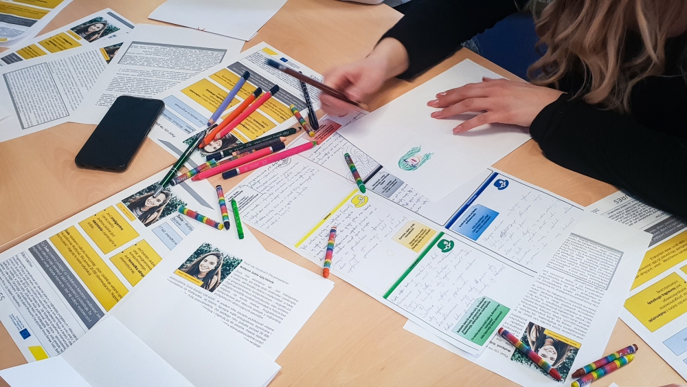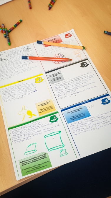 Uczniowie zostali zaznajomieni z techniką sześciu kapeluszy myślowych Edwarda de Bono oraz z techniką Exquisite Corps w odniesieniu do niepewnej przyszłości rynku pracy oraz rozwiązali kilka sytuacji problemowych związanych z potencjalnymi wyborami zawodowymi osób młodych. Informacja zwrotna, uzyskana w ankiecie ewaluacyjnej od uczestników warsztatów, pozwoli na dalsze doskonale materiałów dydaktycznych.