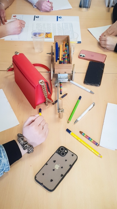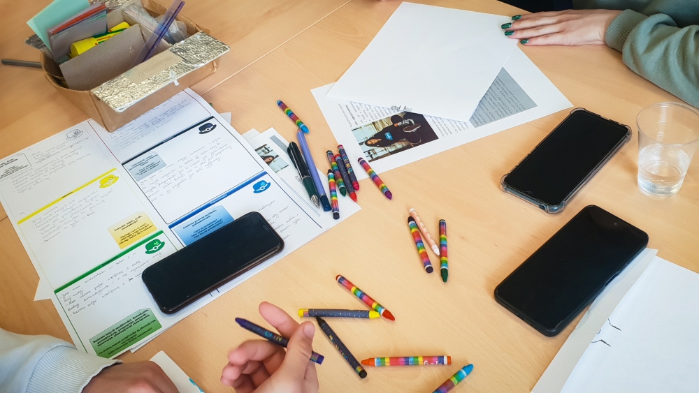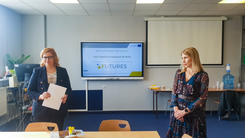 Następnie dr Anna Kononiuk oraz dr Ewa Rollnik-Sadowska – przy wsparciu dr Justyny Kozłowskiej oraz mgr. Tomasza Trochimczuka – poprowadziły warsztaty dedykowane uczniom szkół średnich z zakresu wykorzystania technik kreatywnych w antycypowaniu przyszłości. Celem warsztatów było przetestowanie materiałów dydaktycznych wypracowanych w projekcie FUTURES z zakresu wspierania rozwoju osobistego oraz zawodowego uczniów szkół średnich, którzy stanowią jedną z trzech docelowych grup projektu.