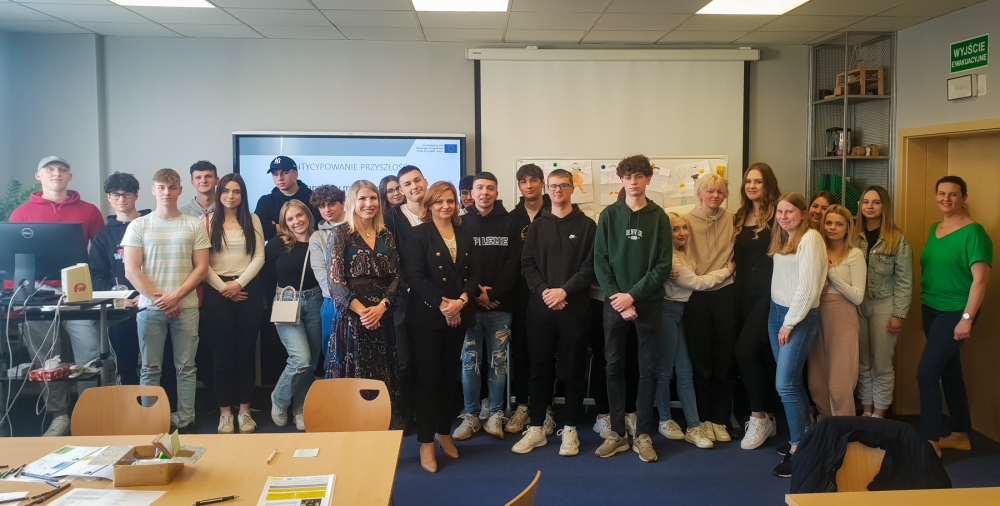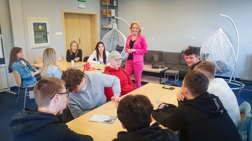 W środę 12 kwietnia 2023 r. ponad dwudziestu uczniów Zespół Szkół Handlowo-Ekonomicznych w Białymstoku wraz z wychowawczynią Panią Anną Dżega odwiedziło Wydział Inżynierii Zarządzania Politechniki Białostockiej. Przyszłych maturzystów powitała dr Ewa Rollnik-Sadowska – Prodziekan ds. Studenckich i Kształcenia, która zaprezentowała kierunki studiów oraz najważniejsze osiągnięcia Wydziału.