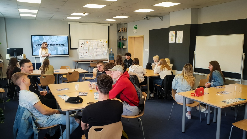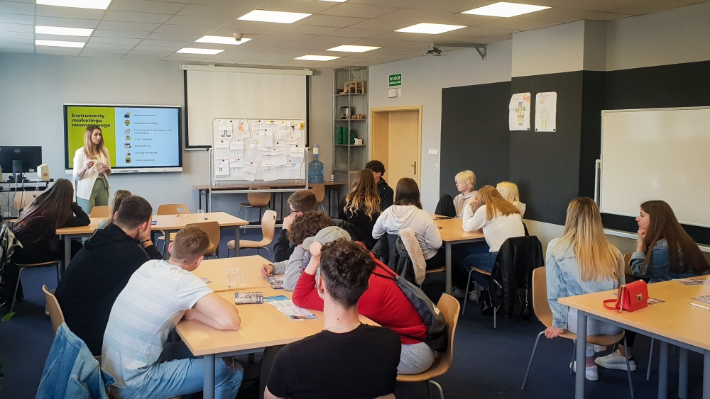 Po krótkiej przerwie, podczas której uczniowie mogli poczuć się jak studenci, rozpoczął się warsztat , z zakresu najnowszych trendów w marketingu internetowym, który poprowadziła mgr Ewelina Tomaszewska z Katedry Marketingu i Turystyki. Podczas zajęć uczestnicy zdobyli praktyczną wiedzę na temat roli marketingu internetowego i jego instrumentów w kreowaniu marki przedsiębiorstwa. Ponadto, mieli okazję pracować w grupach, a następnie zaprezentować opracowaną charakterystykę wybranej marki przed pozostałymi uczestnikami warsztatu.