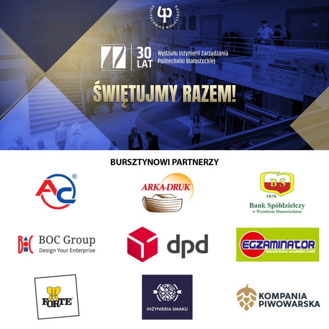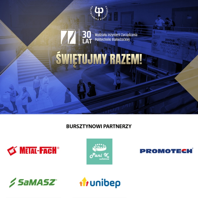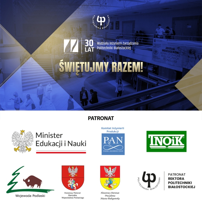 W dniach 21, 22 czerwca 2023 r. w gronie przyjaciół, zaproszonych gości, pracowników i studentów będziemy świętować 30-lecie Wydziału Inżynierii Zarządzania. Te bardzo doniosłe wydarzenie jest okazją, by sięgnąć do historii oraz spojrzeć na teraźniejszość.