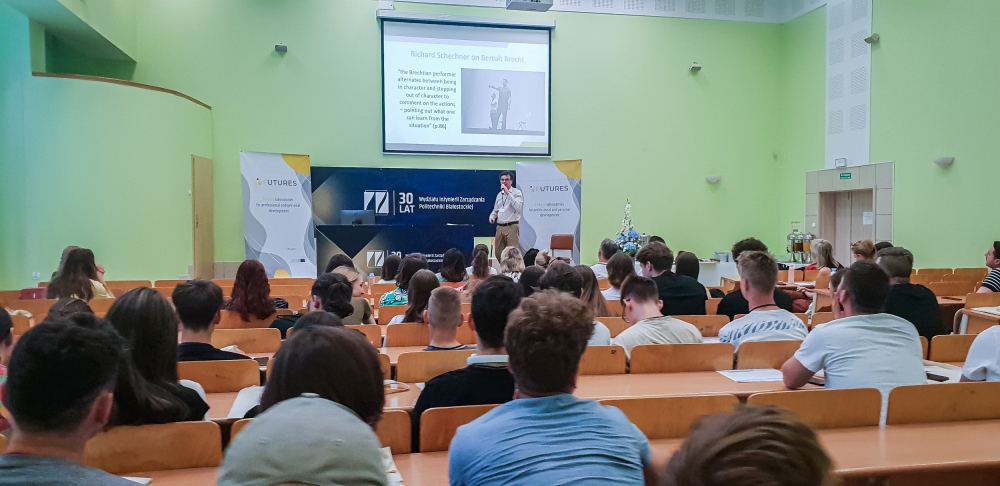 W kolejnej części spotkania dr Loes Damhof z Hanze University of Applied Sciences zaprezentowała znaczenie Futures Literacy w rozwoju osób młodych, natomiast Nick Fryer z Middlesex University (Wielka Brytania) omówił, w jaki sposób można powiązać techniki performatywne z rynkiem pracy.