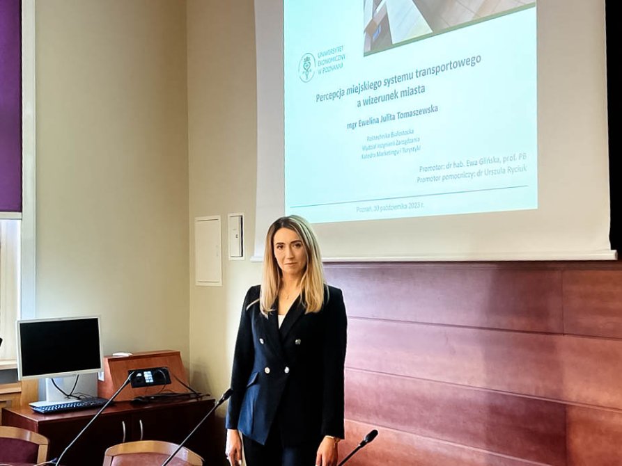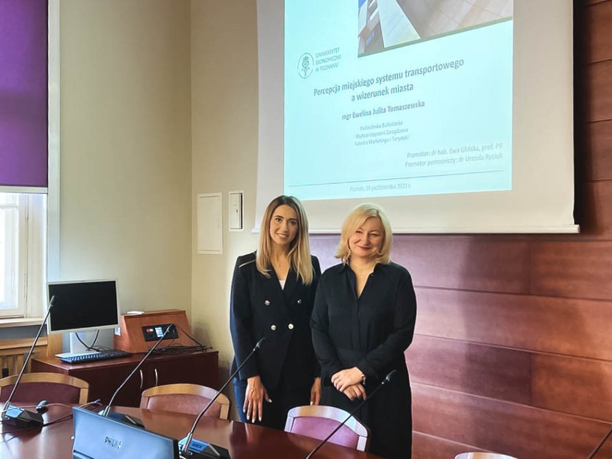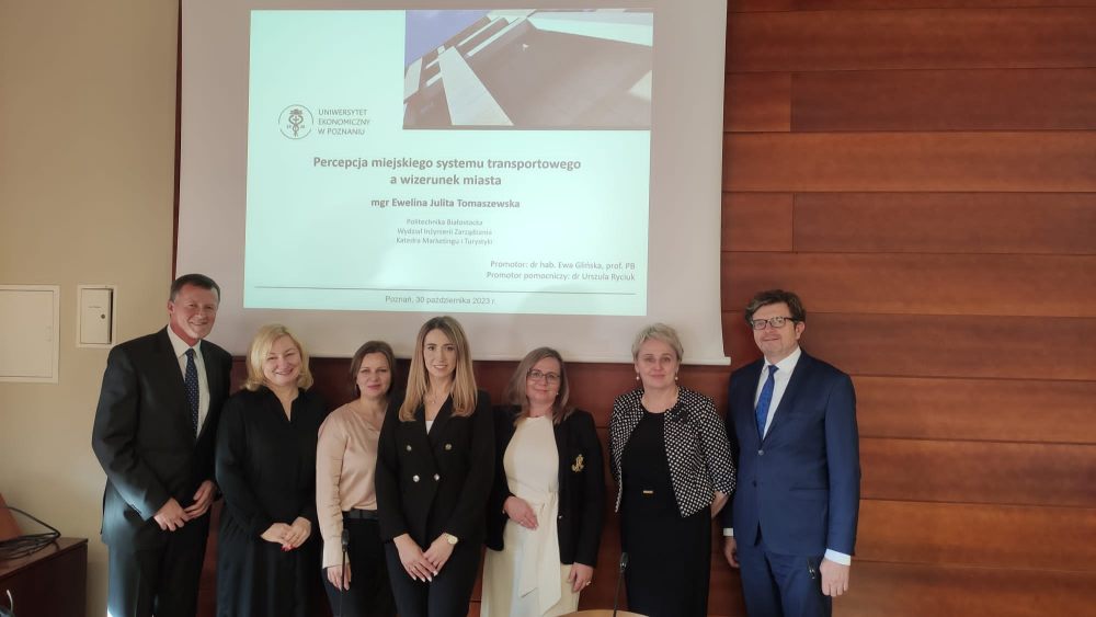 30 października 2023 roku na Uniwersytecie Ekonomicznym w Poznaniu (UEP), odbyła się publiczna obrona rozprawy doktorskiej mgr Eweliny Julity Tomaszewskiej, pt. Percepcja miejskiego systemu transportowego a wizerunek miasta.
