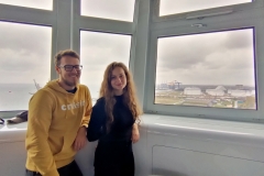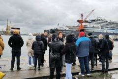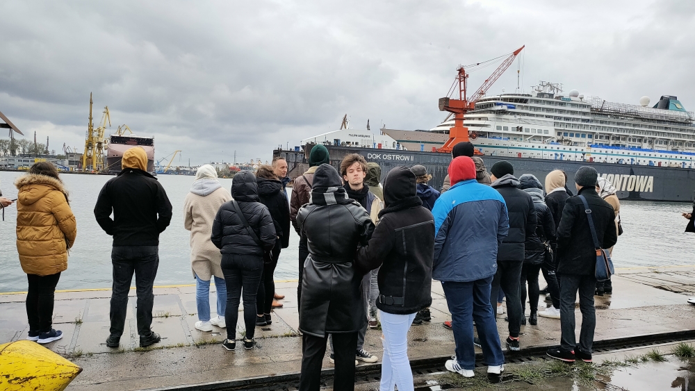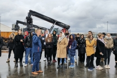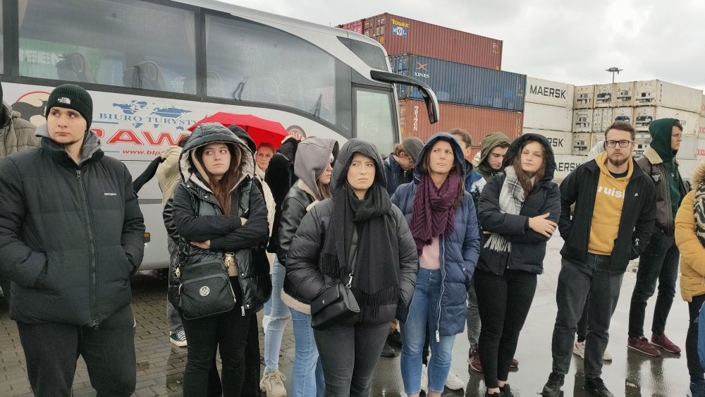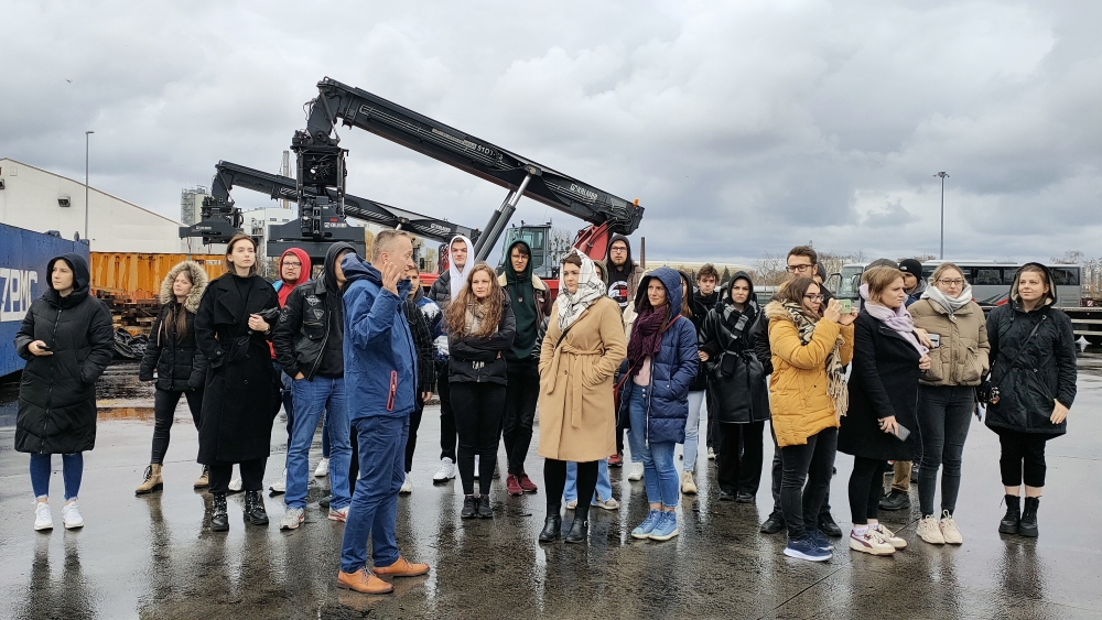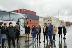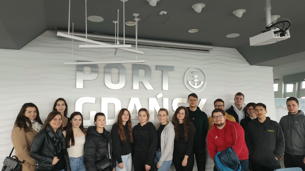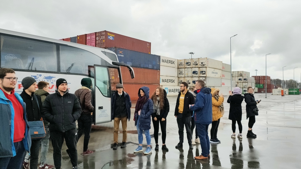 Wiele praktycznych informacji dostarczyła także wizyta w Porcie Gdańsk. Jest on jedynym bałtyckim portem, który obsługuje bezpośrednie połączenia kontenerowe z Chinami. Na terenie portu wewnętrznego znajdują się: terminal kontenerowy, terminal promowo-pasażerski i RO-RO, nabrzeża do przeładunku samochodów osobowych, owoców cytrusowych, siarki, nawozów. Port wewnętrzny przystosowany jest do przeładunku drobnicy konwencjonalnej i towarów masowych (m.in. wyrobów hutniczych, ponadgabarytowych, zbóż, rudy czy węgla). Port zewnętrzny tworzą 4 pirsy: paliwowy, węglowy, LPG i rudowy, a także terminal kontenerowy DCT, znajdujące się bezpośrednio na wodach Zatoki Gdańskiej. W trakcie wizyty na 11 piętrze wieży Kapitanatu, studenci podziwiali panoramę ogromnego nabrzeża, składów kontenerów oraz statków zarówno tych cumujących, jak i dopiero płynących w kierunku portu. Następnie, podczas objazdu autokarowego po Porcie Gdańsk, obserwowali procesy przeładunkowe oraz mieli niepowtarzalną okazję z bliska zobaczyć różnorodne specjalistyczne urządzenia służące do manipulacji kontenerami i obsługi procesów logistycznych.