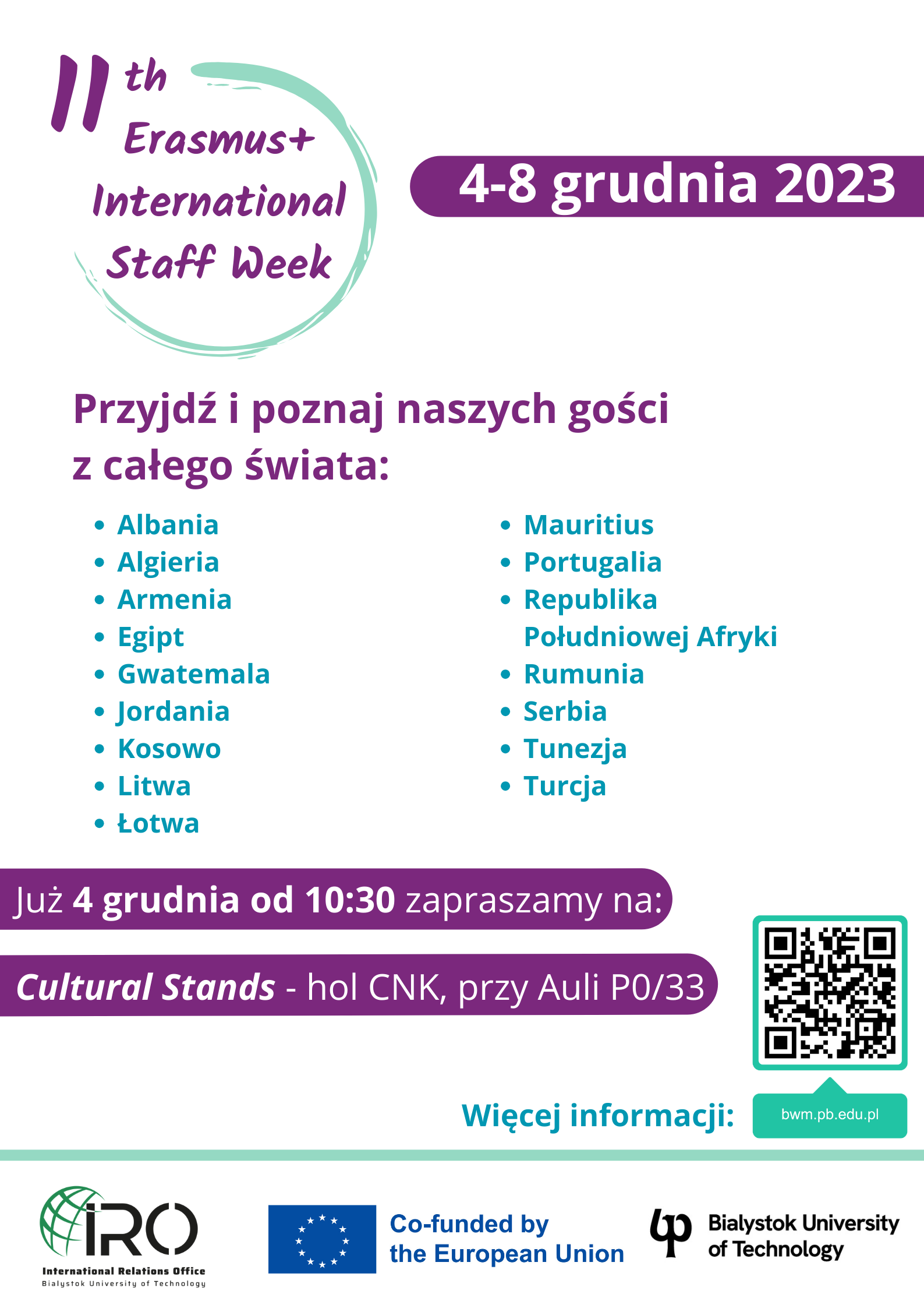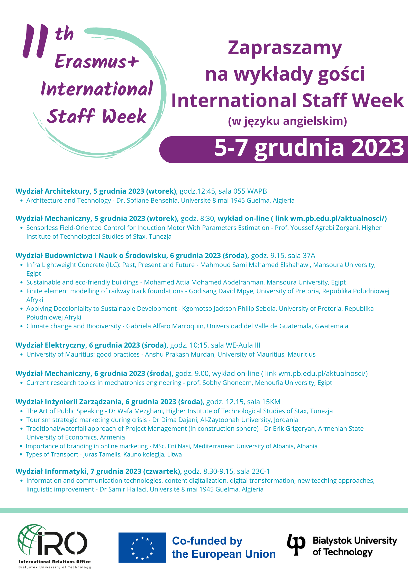 Serdecznie zapraszamy do wzięcia udziału w 11 International Staff Week na PB. Będzie to doskonała okazja do spotkań z przedstawicielami uczelni partnerskich.