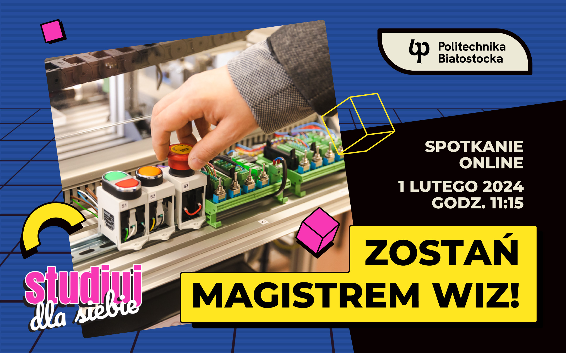 1 lutego 2024 roku (czwartek) wejdź na oficjalny kanał YouTube Politechniki Białostockiej i weź udział w spotkaniach online „Zostań magistrem PB!”