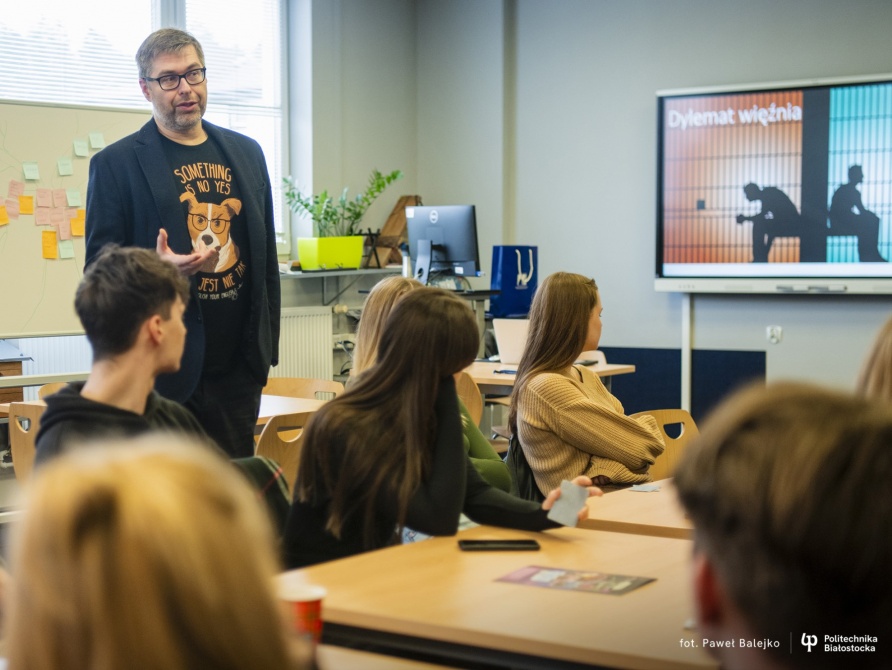 W Sali Kreatywnej dr Łukasz Nazarko podczas warsztatów ekonomii behawioralnej przybliżył uczniom teorię gier w badaniu procesów podejmowania decyzji. W Laboratorium Wysokiego Składowania dr inż. Łukasz Budzyński prezentował działanie robotów, manipulatorów i przenośników w nowoczesnych magazynach.