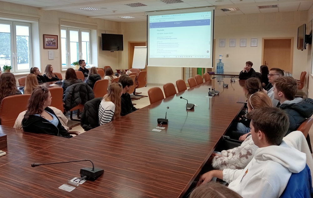 Uczniowie z różnych miejscowości odwiedzili Wydział Inżynierii Zarządzania podczas kolejnej edycji Dnia Otwartego w Politechnice Białostockiej. W Sali Rady Wydziału Prodziekan ds. Rozwoju i Współpracy dr Urszula Kobylińska zaprezentowała ścieżki kształcenia na Wydziale z uwzględnieniem dwóch stopni studiów, możliwości indywidualnego rozwoju, w tym kontynuacji studiów za granicą. Przedstawiła także działania realizowane na Wydziale, które mają na celu umożliwienie bezpośredniego kontaktu studentów z potencjalnymi pracodawcami. Prodziekan ds. Studenckich i Kształcenia dr Ewa Rollnik-Sadowska prezentując ofertę edukacyjną poszczególnych kierunków studiów odpowiadała na szereg pytań związanych z warunkami przyjęcia na studia i specyfiką studiowania.