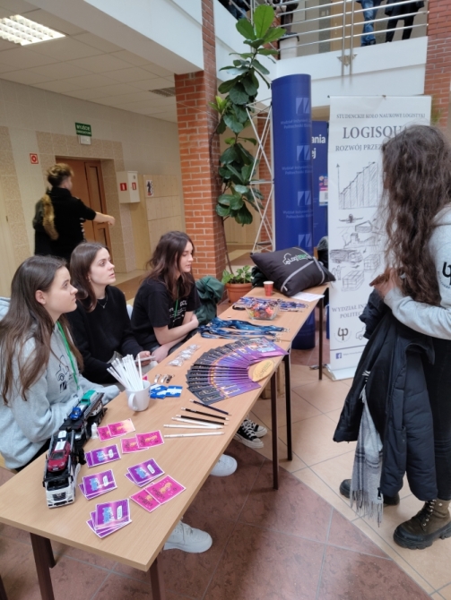 W hali Berlin studenci z Samorządu Studenckiego WIZ przekazywali kandydatom przydatne informacje związane ze studiami. Członkowie Studenckich Kół Naukowych „Obieżyświat” dr inż. Romualda Ziółkowskiego i „LogiSquad dr Marty Jarockiej oraz „Marketing 5.0” dr Eweliny Tomaszewskiej zapraszali do rozwoju swoich zainteresowań w organizacjach studenckich.