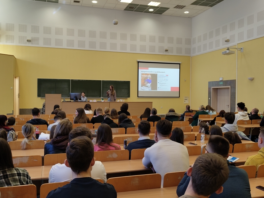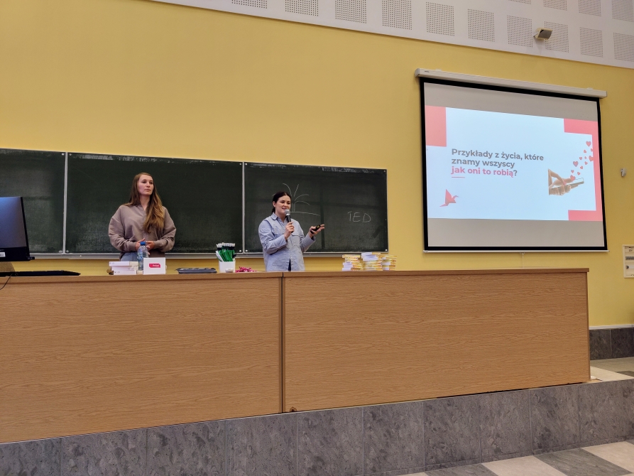 Następnie, głos zabrały ekspertki z Kohai: pani Magdalena Surowiec, Team Lider, oraz pani Magdalena Jaroma, Senior Social Media Specialist. Podczas wystąpienia, prelegentki wyjaśniły istotę tzw. love brands, ilustrując je licznymi przykładami. Słuchacze dowiedzieli się, w jaki sposób budować trwałe relacje z klientami poprzez świadome działania marketingowe. W trakcie wykładu nie zabrakło także praktycznych wskazówek dotyczących planowania kampanii reklamowej i tworzenia treści dostosowanych do aktualnych trendów oraz potrzeb różnych grup odbiorców. Prelegentki chętnie udzielały odpowiedzi na pytania słuchaczy, które pojawiały się w trakcie wykładu.