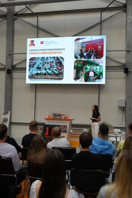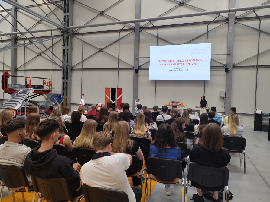 Studenci wzięli także udział w spotkaniu z Panią Sandrą Snarską, specjalistką ds. marketingu. Podczas prelekcji poznali nie tylko dobre praktyki w zakresie wdrażania i promocji innowacyjnych rozwiązań technologicznych, ale również specyfikę branży producentów maszyn rolniczych, strategię marketingową firmy, w tym przykłady wykorzystywanych instrumentów marketingowych.