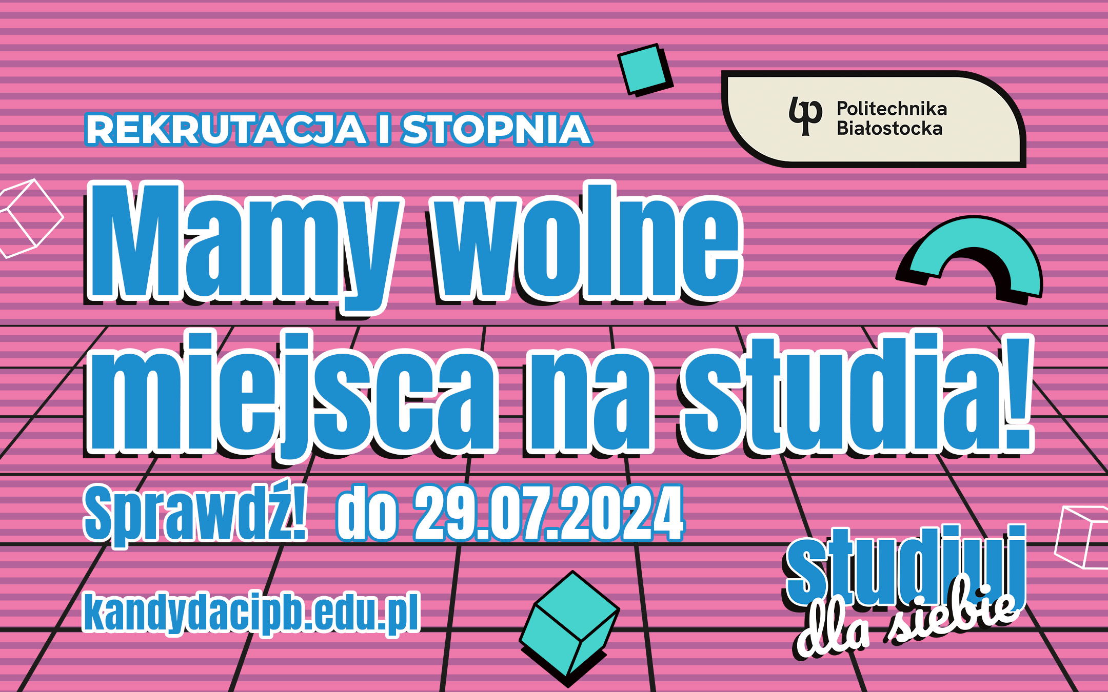 Podania o przyjęcie w ramach wolnych miejsc mogą złożyć zarówno kandydaci, którzy do tej pory nie brali pod uwagę studiów w Politechnice Białostockiej, jak i ci, którzy próbowali dostać się na swój wymarzony kierunek studiów z szerokiej oferty edukacyjnej uczelni, ale z różnych powodów ten plan im się nie powiódł.