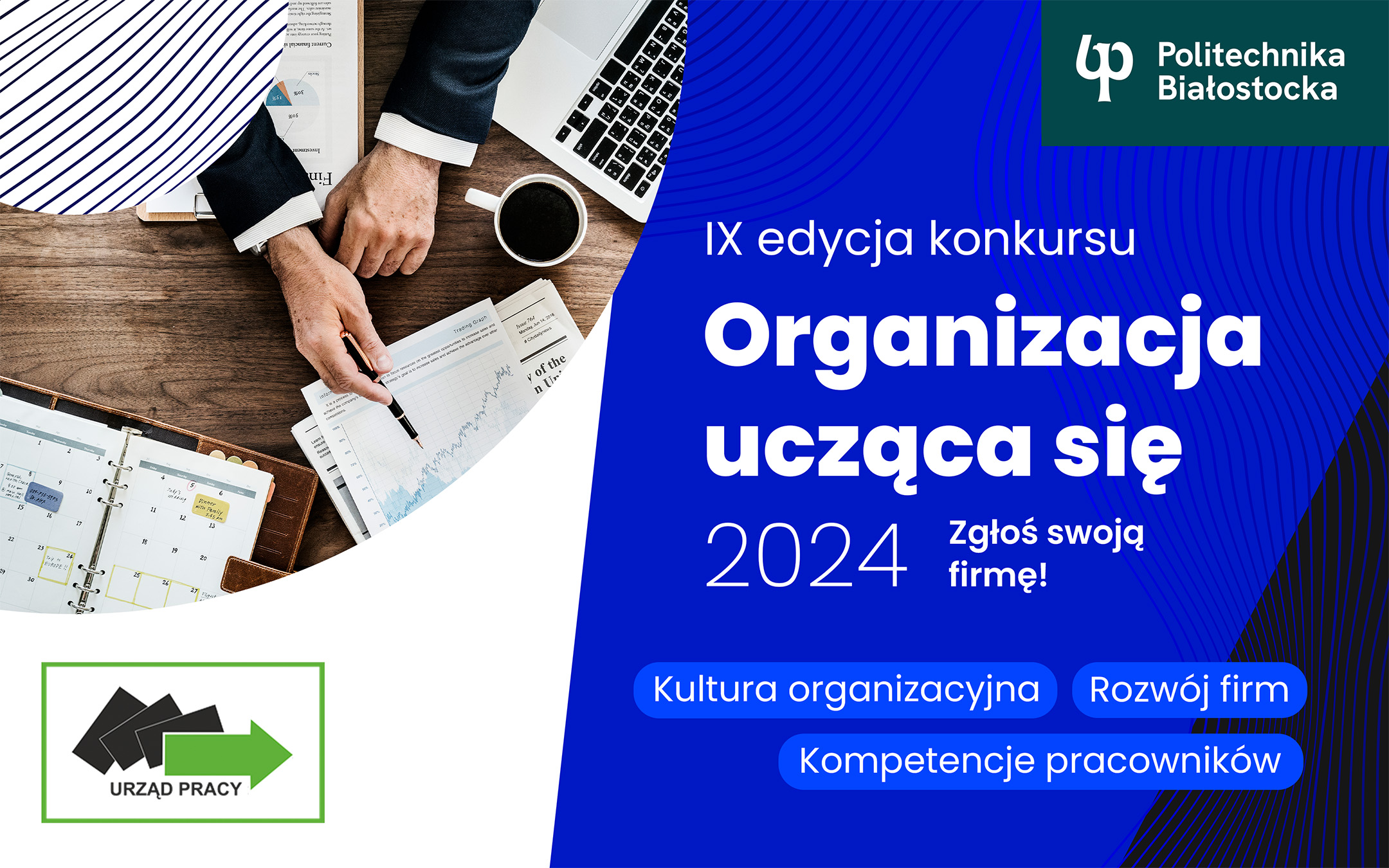 Wojewódzki Urząd Pracy w Białymstoku i Politechnika Białostocka zapraszają do udziału w konkursie „Organizacja ucząca się 2024”. Mogą w nim uczestniczyć pracodawcy z województwa podlaskiego, stosujący zasady organizacyjnego uczenia się, tj. inwestujący w rozwój kompetencji pracowników, zorientowani na zarządzanie wiedzą oraz wyróżniający się m.in. kulturą organizacyjną stymulującą rozwiązania prorozwojowe.