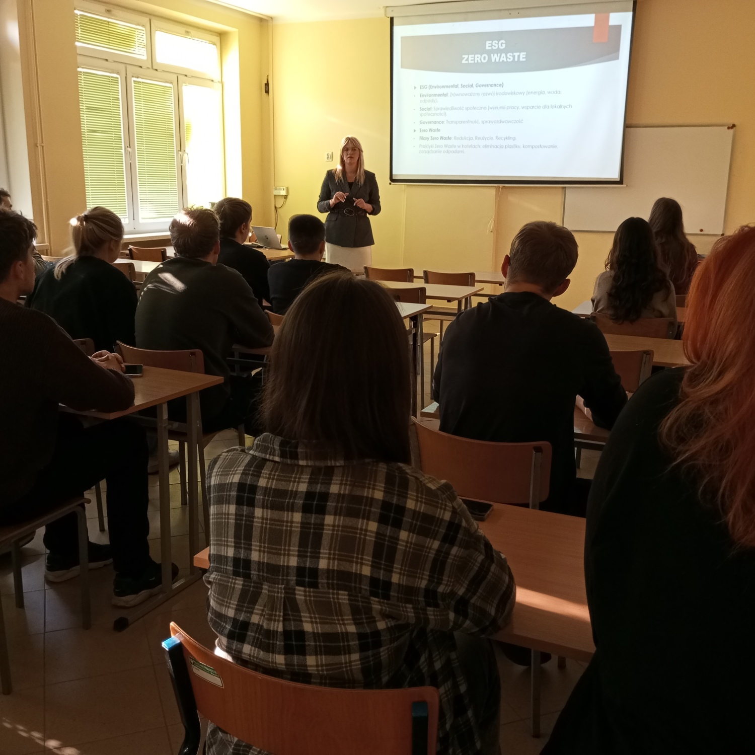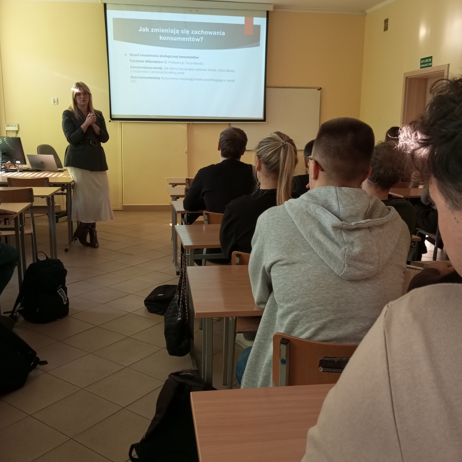 07-11-20246 listopada 2024 r. studenci kierunku Zarządzanie, II stopień, specjalność „Zarządzanie produktem i sprzedażą” mieli wyjątkową okazję uczestniczyć w spotkaniu z ekspertką branży hotelarskiej, która poprowadziła wykład i warsztaty na temat wpływu koncepcji ESG oraz filozofii Zero waste na zachowania klientów w sektorze hotelarsko-gastronomicznym. Ekspertka, posiadająca wieloletnie doświadczenie w zarządzaniu obiektami hotelowymi i gastronomicznymi, omówiła znaczenie zrównoważonego rozwoju i ekologicznych inicjatyw jako czynników kształtujących decyzje konsumenckie.