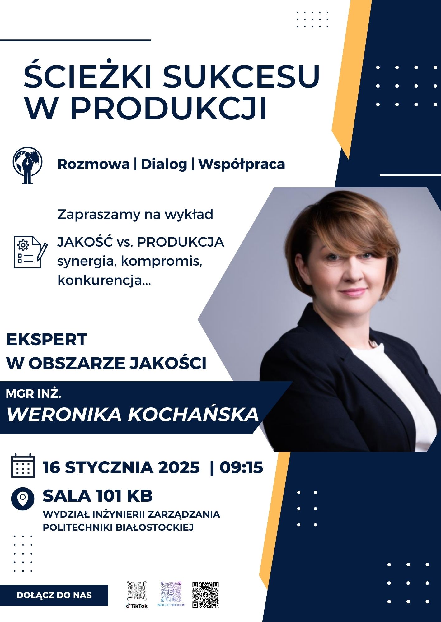 • posłuchasz inspirującej prelekcji mgr inż. Weroniki Kochańskiej, ekspertki w obszarze jakości.
