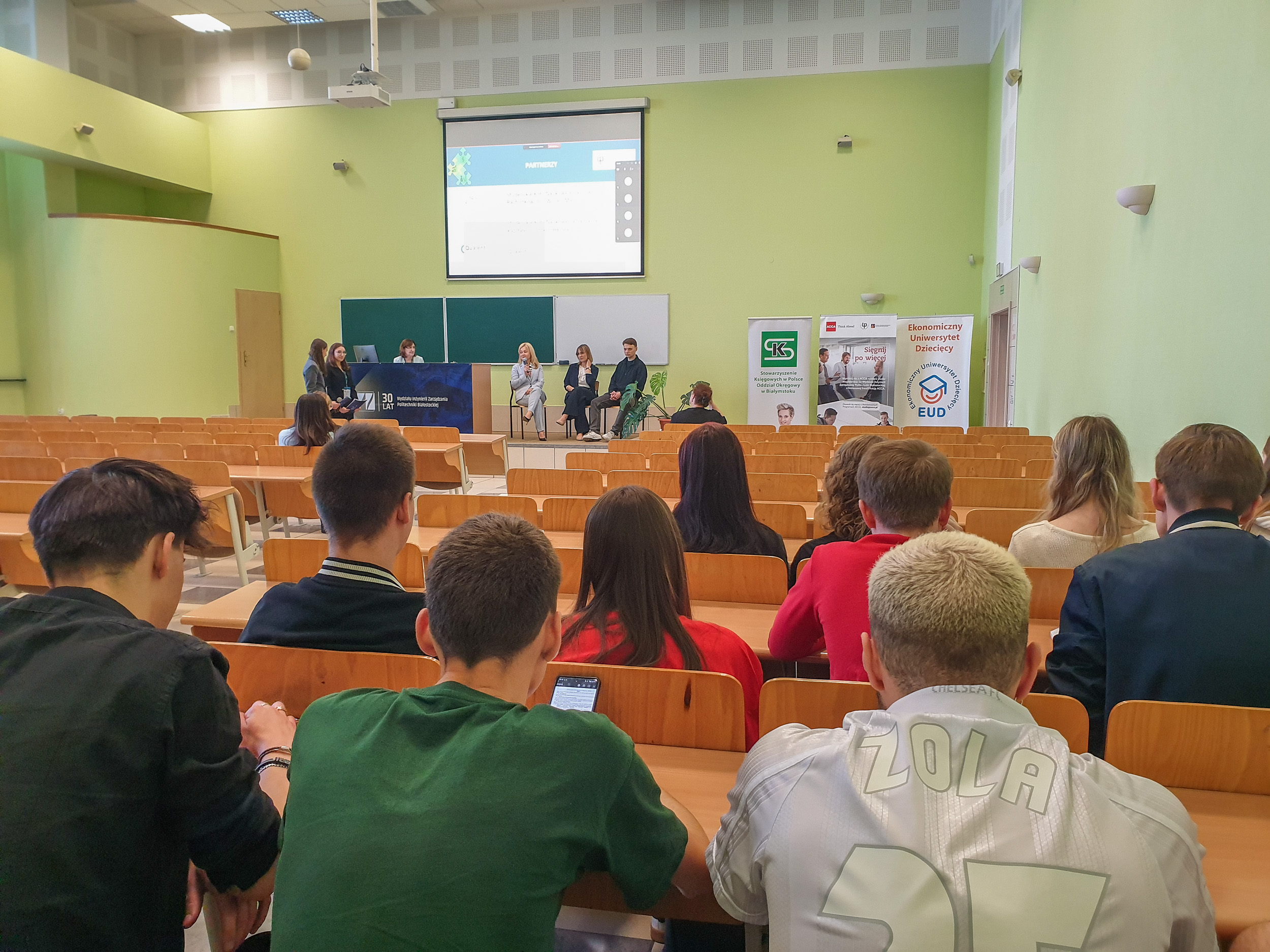 W pierwszej sesji panelowej – „Praktycy o codziennych wyzwaniach w finansach i zarządzaniu” wzięli udział: pani Beata Kropiewnicka Prezes Stowarzyszenia Księgowych w Polsce Oddział Okręgowy w Białymstoku i zastępca dyrektora ds. finansowych/główny księgowy dużego podmiotu sektora publicznego, pani Ewa Karpowicz przedstawicielka Kancelarii Księgowo – Audytorskiej Buchalteria Sp. z o.o. oraz pan Wojciech Kupiec strategy manager w Kuchni Vikinga. W bardzo ciekawy sposób paneliści przybliżyli swoją drogę zawodową, podkreślili jak ważną rolę odgrywa zarówno wiedza i kompetencje, jak i otwartość na pojawiające się wyzwania. Uczestnicy w tej sesji zwrócili uwagę na specyfikę pracy finansisty oraz audytora w kontekście nowych technologii, konieczność podejmowania ryzyka w rozwoju biznesu i wykorzystania nowych możliwości. Ponadto podkreślili konieczność ciągłego rozwoju, ale także stosowania zasad etyki zawodowej. Spotkanie cieszyło się bardzo dużym zainteresowaniem słuchaczy.