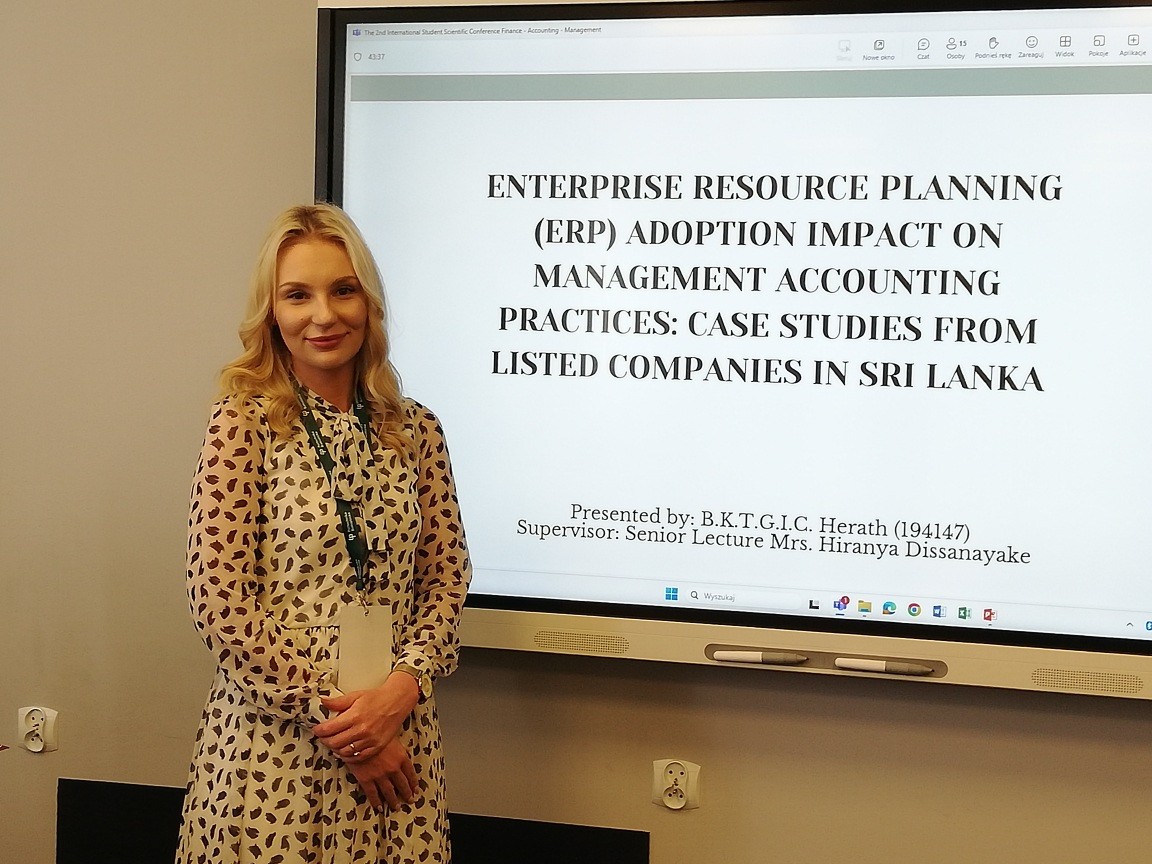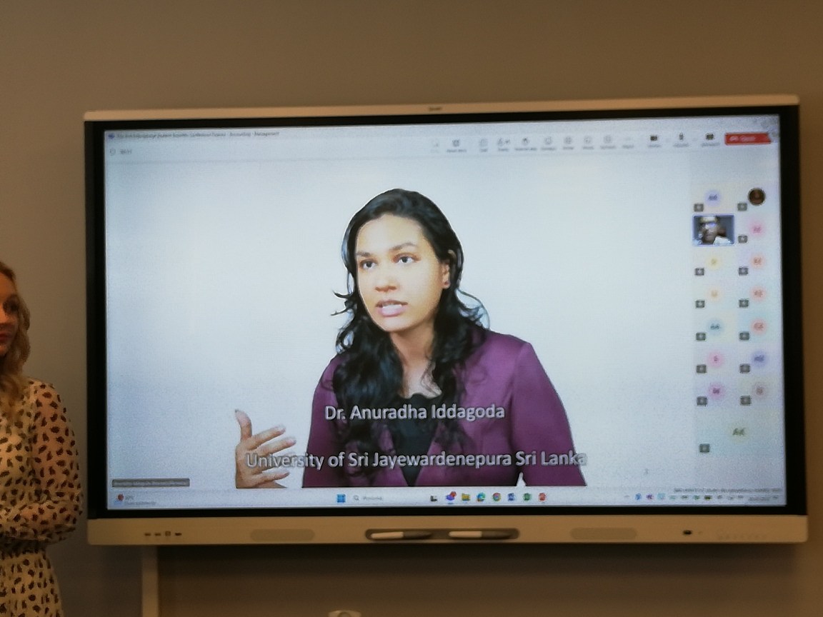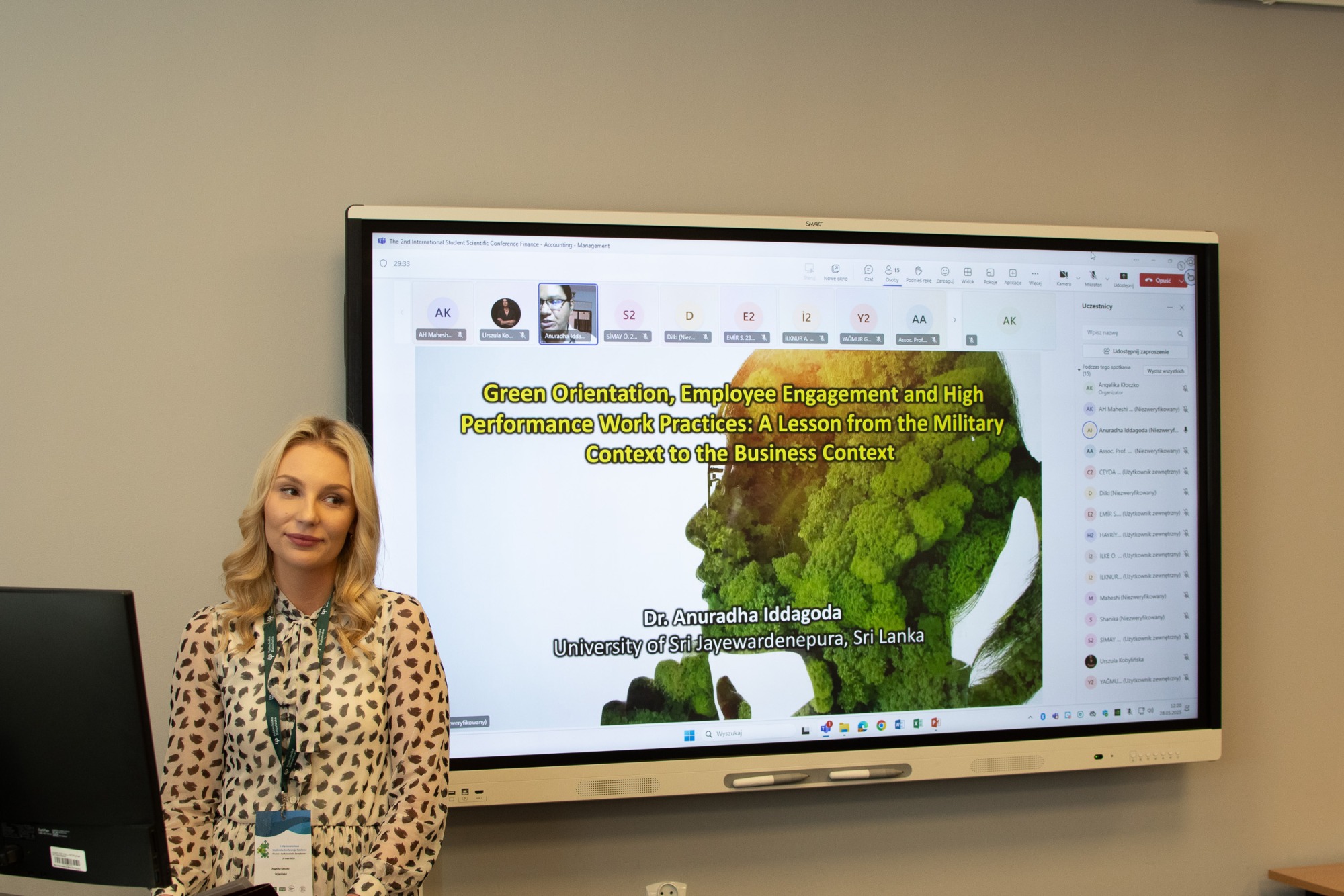 W drugiej sesji w języku angielskim uczestników przywitała dr Urszula Kobylińska Prodziekan ds. Rozwoju i Współpracy. Krótkie wystąpienie wprowadzające wygłosiła dr Anuradha Iddagoda z University of Sri Jayawardenepura. Następnie swoje osiągnięcia i wyniki badań z zakresu finansów i zarządzania zaprezentowali studenci z takich ośrodków jak Wayamba University of Sri Lanka i University of Sri Jayawardenepura ze Sri Lanki oraz Manisa Celal Bayar University z Turcji.