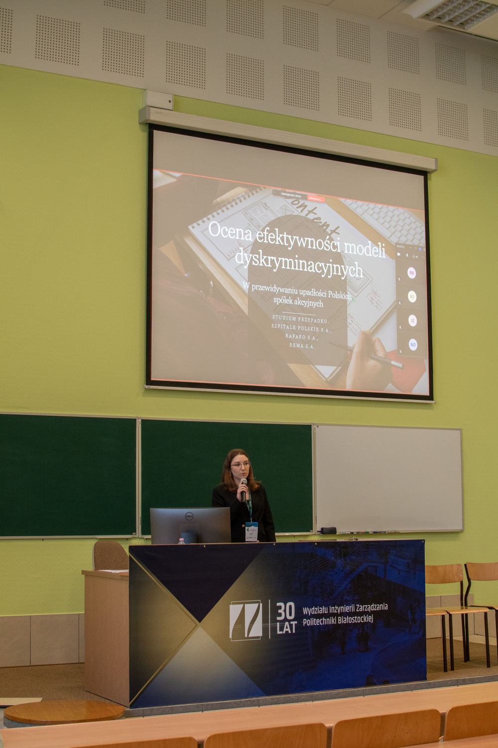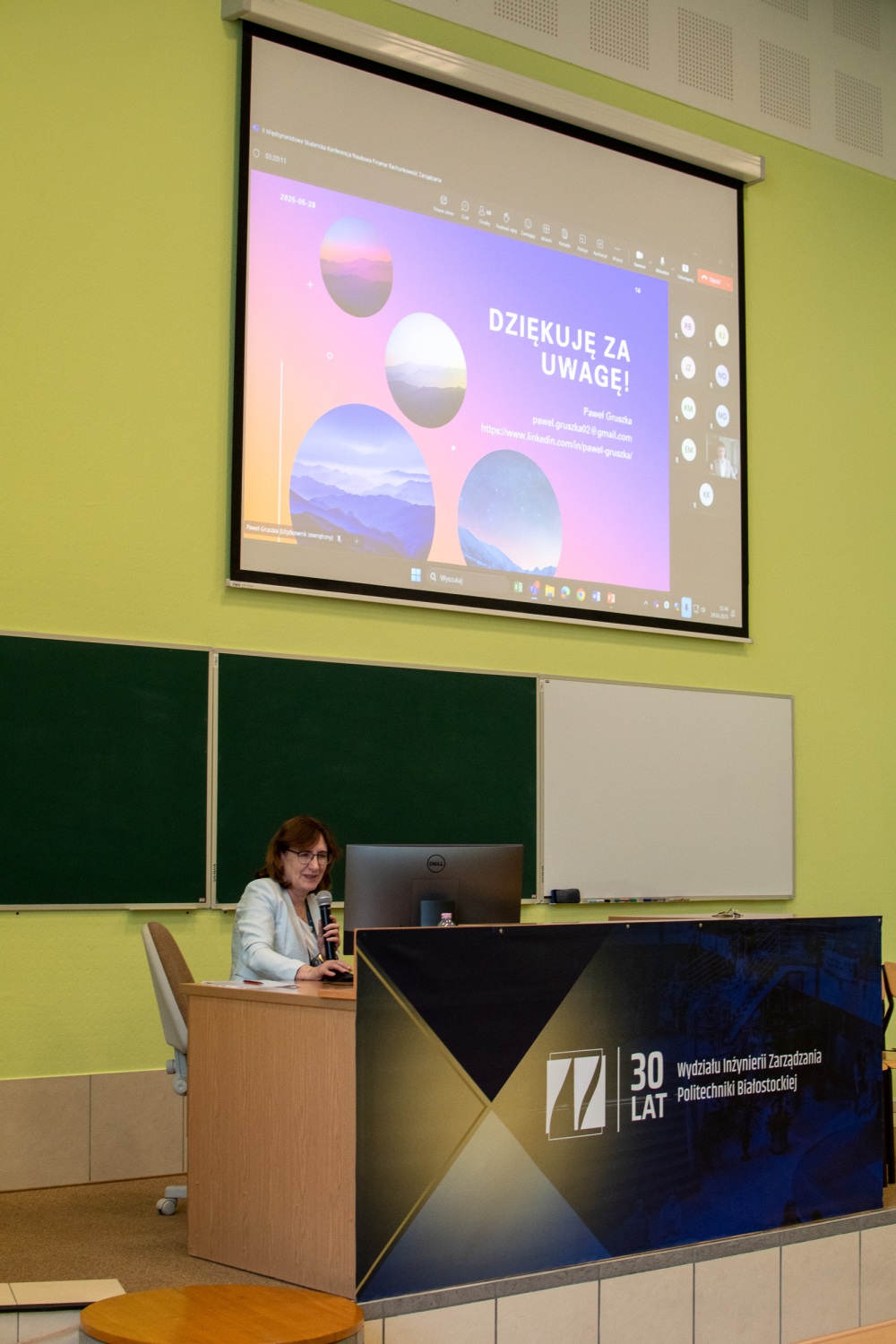 Równoległa sesja w języku polskim zgromadziła uczestników prezentujących swoje osiągnięcia w obszarach badawczych obejmujących finanse, rachunkowość oraz nauki o zarządzaniu i jakości. Gościliśmy na Wydziale Inżynierii Zarządzania oraz on-line przedstawicieli Uniwersytetu Wrocławskiego, Uniwersytetu w Siedlcach, Uniwersytetu w Białymstoku, Uniwersytetu Warmińsko-Mazurskiego w Olsztynie, Wojskowej Akademii Technicznej w Warszawie oraz Wydziału Inżynierii Zarządzania Politechniki Białostockiej.