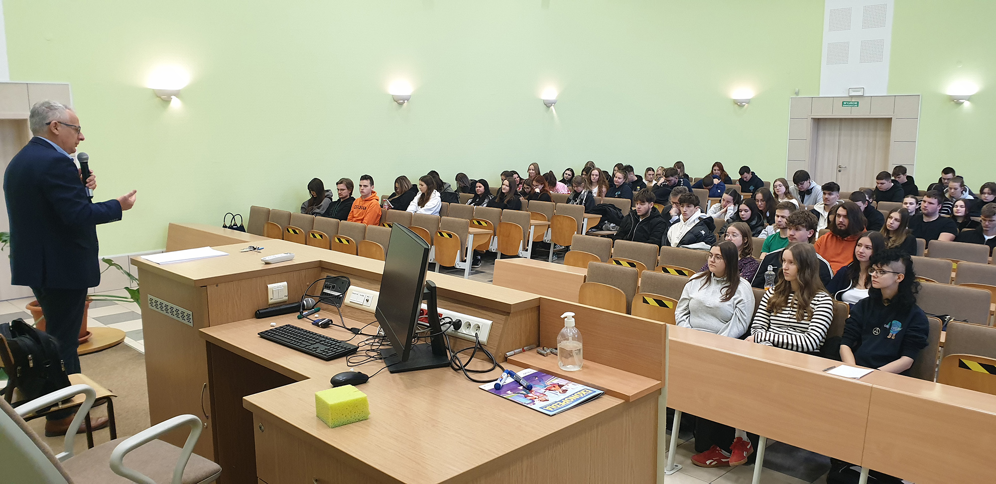 Przedsiębiorca przedstawił zasady i problemy prowadzenia biura podróży. Ponadto zapoznał studentów z możliwościami związanymi z dobrze płatną pracą sezonową w charakterze pilota wycieczek, przy czym poinformował, że obecnie trwa nabór na kurs dla przyszłych pilotów. Spotkanie spotkało się dużym zainteresowaniem studentów, którzy zarówno podczas spotkania jak i po jego zakończeniu zadawali liczne pytania naszemu gościowi.