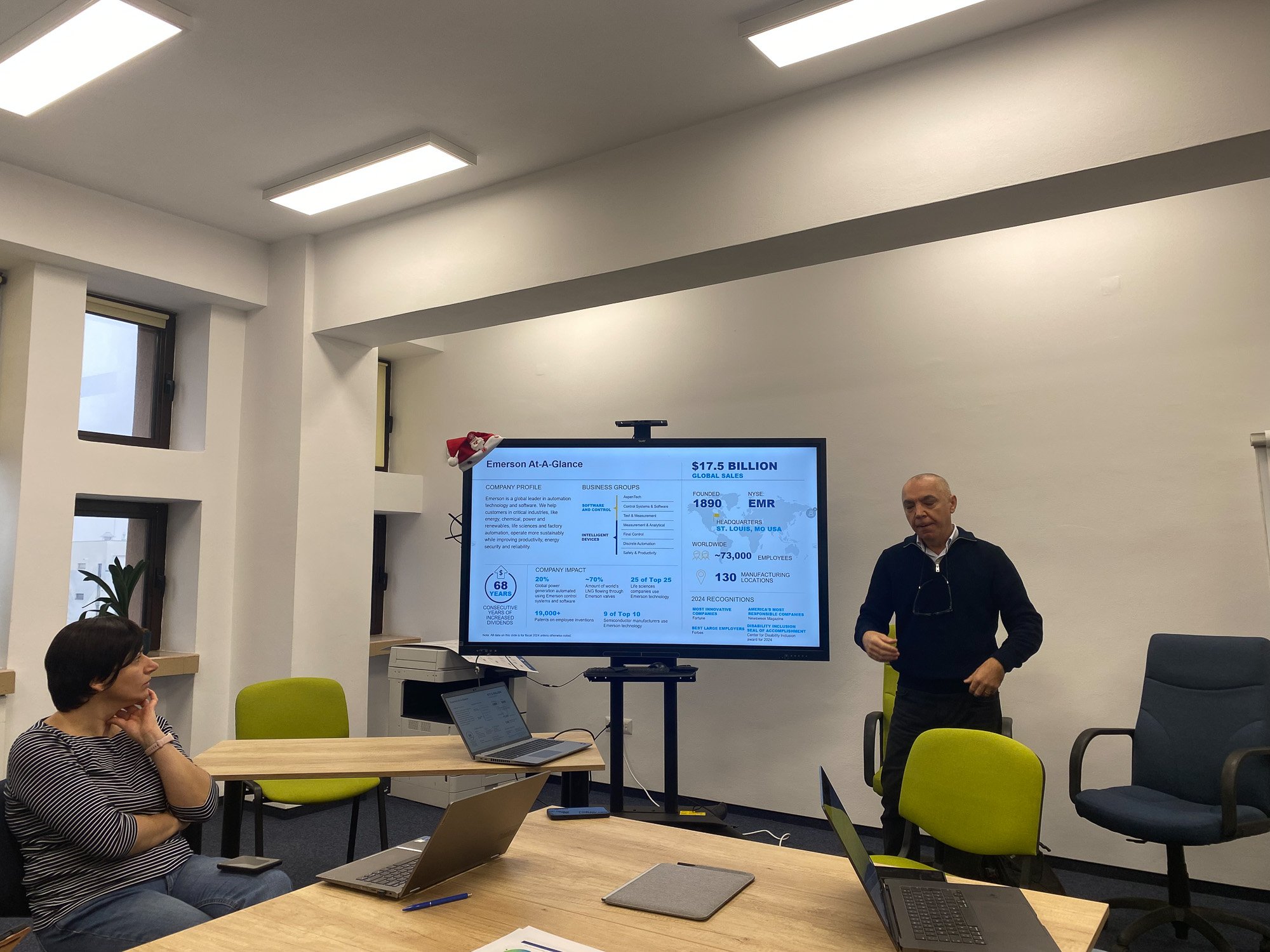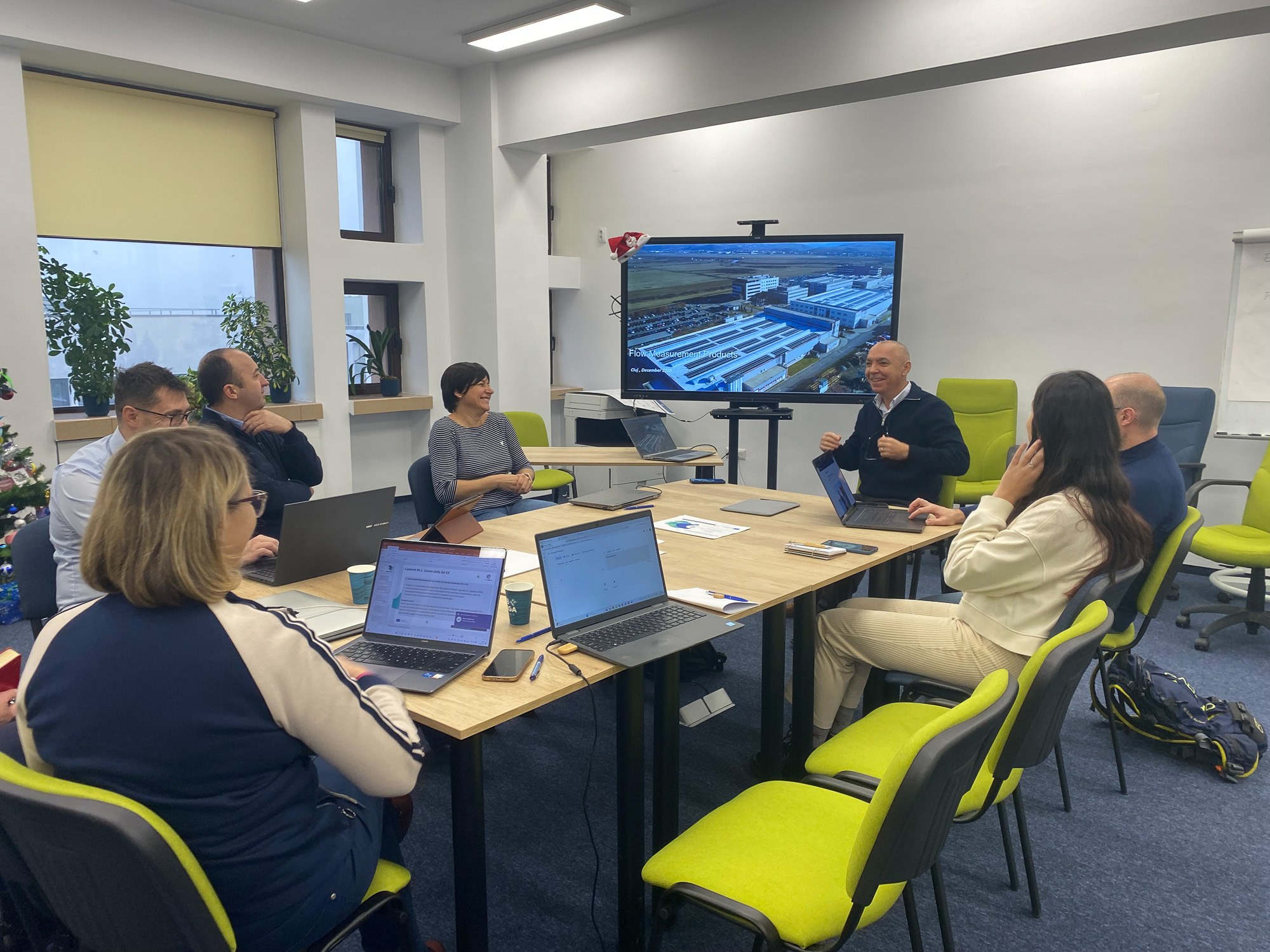 Zaprezentowane wyniki pilotażu narzędzia IT potwierdziły jego wysoką użyteczność dydaktyczną oraz potencjał dalszego rozwoju, m.in. w kierunku większej interaktywności, integracji z narzędziami inżynierskimi oraz zastosowań opartych na rzeczywistych studiach przypadków. Drugi dzień spotkania koncentrował się na współpracy z przemysłem oraz szczegółowym omówieniu treści czterech modułów kursowych projektu. Gościem specjalnym był dyrektor operacyjny firmy Emerson – Laposi Emeric, który zaprezentował praktyczne doświadczenia przedsiębiorstwa w zakresie gospodarki o obiegu zamkniętym oraz inżynierii odwrotnej. W dalszej części partnerzy projektu dyskutowali nad strukturą i zakresem modułów dydaktycznych, w tym nad modułem dotyczącym rzeczywistych wyzwań przemysłowych realizowanych przez interdyscyplinarne zespoły studenckie. Spotkanie zakończyło się podsumowaniem ustaleń, omówieniem kwestii jakości i zarządzania ryzykiem oraz wyznaczeniem kolejnych kroków prac.
