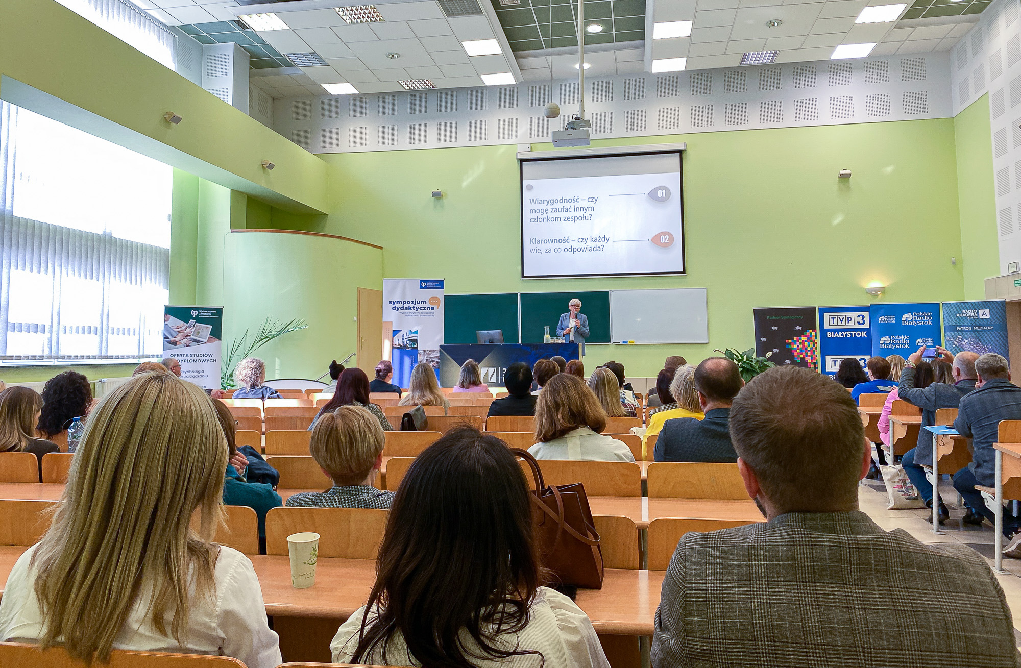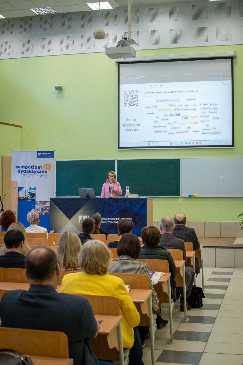 Wydarzenie zainaugurowały wystąpienia Władz Uczelni i Wydziału Inżynierii Zarządzania, Pani profesor Joanny Ejdys oraz JM Rektor PB dr hab. inż. Marty Kosior-Kazberuk, prof. PB, która podkreśliła, że Politechnika to partner w tworzeniu nowoczesnego systemu edukacji na każdym jego etapie. Podlaski Kurator Oświaty Pani Agnieszka Krokos – Janczyło podziękowała Politechnice Białostockiej oraz dyrekcji podlaskich szkół za podejmowanie w ramach I Sympozjum dyskusji o obliczach bezpieczeństwa w zarządzaniu współczesną szkołą. Zastępca Prezydenta Miasta Białegostoku, Pan Tomasz Klim podkreślił rolę synergii inicjatyw realizowanych w tak ważnym temacie, jak bezpieczeństwo i dobrostan, w tym w ramach obecnej podczas Sympozjum kampanii Żółta Kanapa, która w tym roku skupia się na przeciwdziałaniu hejtowi.