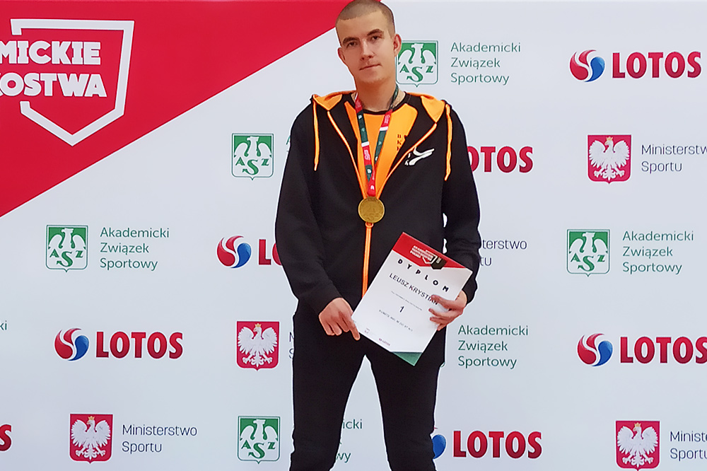 Krystian Leusz został Akademickim Mistrzem Polski w klasyfikacji generalnej. Student Wydziału Inżynierii Zarządzania startował w kumite indywidualnym mężczyzn do 67 kg.