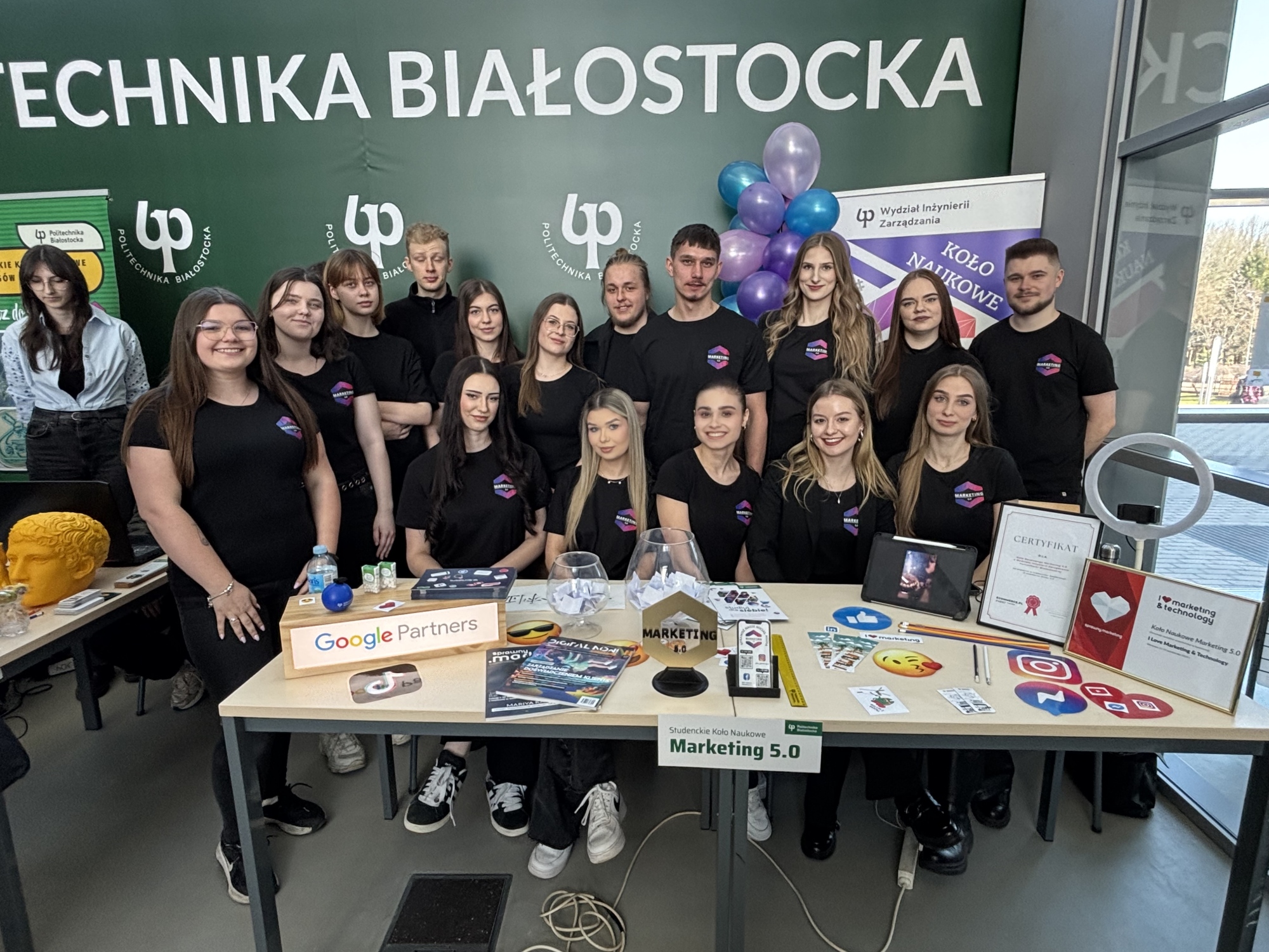 Koło Naukowe Marketing 5.0 zostało założone z inicjatywy studentów w maju 2023 roku na Wydziale Inżynierii Zarządzania Politechniki Białostockiej.